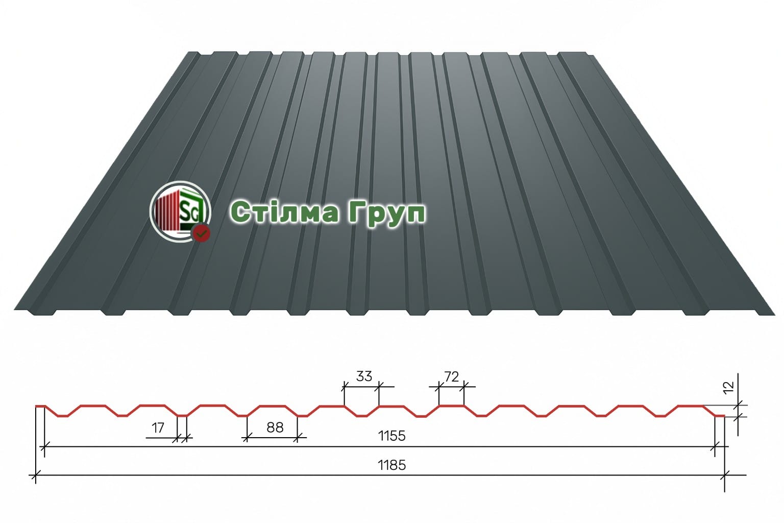 Профнастил ПС-12 стіновий – будівельний матеріал, виготовлений методом холодного деформування з рулонної сталі на прокатних станах. Найбільш поширений у вигляді оцинкованого та оцинкованого з полімерним покриттям.